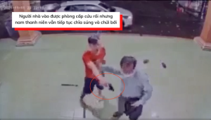 Người đàn ông mặc áo đỏ lớn tiếng chửi thề, trong lúc chửi, trên tay phải người này cầm một vật giống súng, màu đen. Nhân viên y tế chưa kịp phản ứng thì bị nam thanh niên xô đẩy và chĩa thẳng súng vào người này.