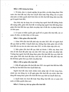– Giảm 30% tiền thuê đất phải nộp của năm 2021 đối với người thuê đất quy định tại Điều 2 Quyết định 27/2021, không thực hiện giảm trên số tiền thuê đất còn nợ của các năm trước năm 2021 và tiền chậm nộp (nếu có).