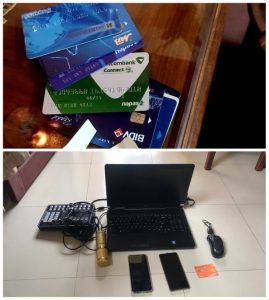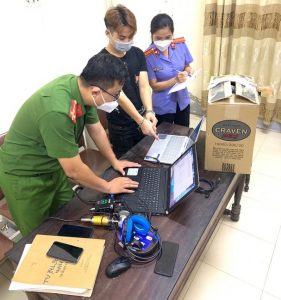 Cơ quan chức năng thu giữ tang vật gồm: 05 máy tính xách tay, 01 máy tính để bàn, 07 điện thoại di động, 03 bộ micro, lọc âm, 05 thẻ ATM.