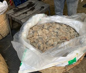 LTH cùng đồng bọn ngụy trang ma túy trong các giỏ tre, bên trên phủ cá mắm để qua mặt lực lượng chức năng. Ảnh: CA